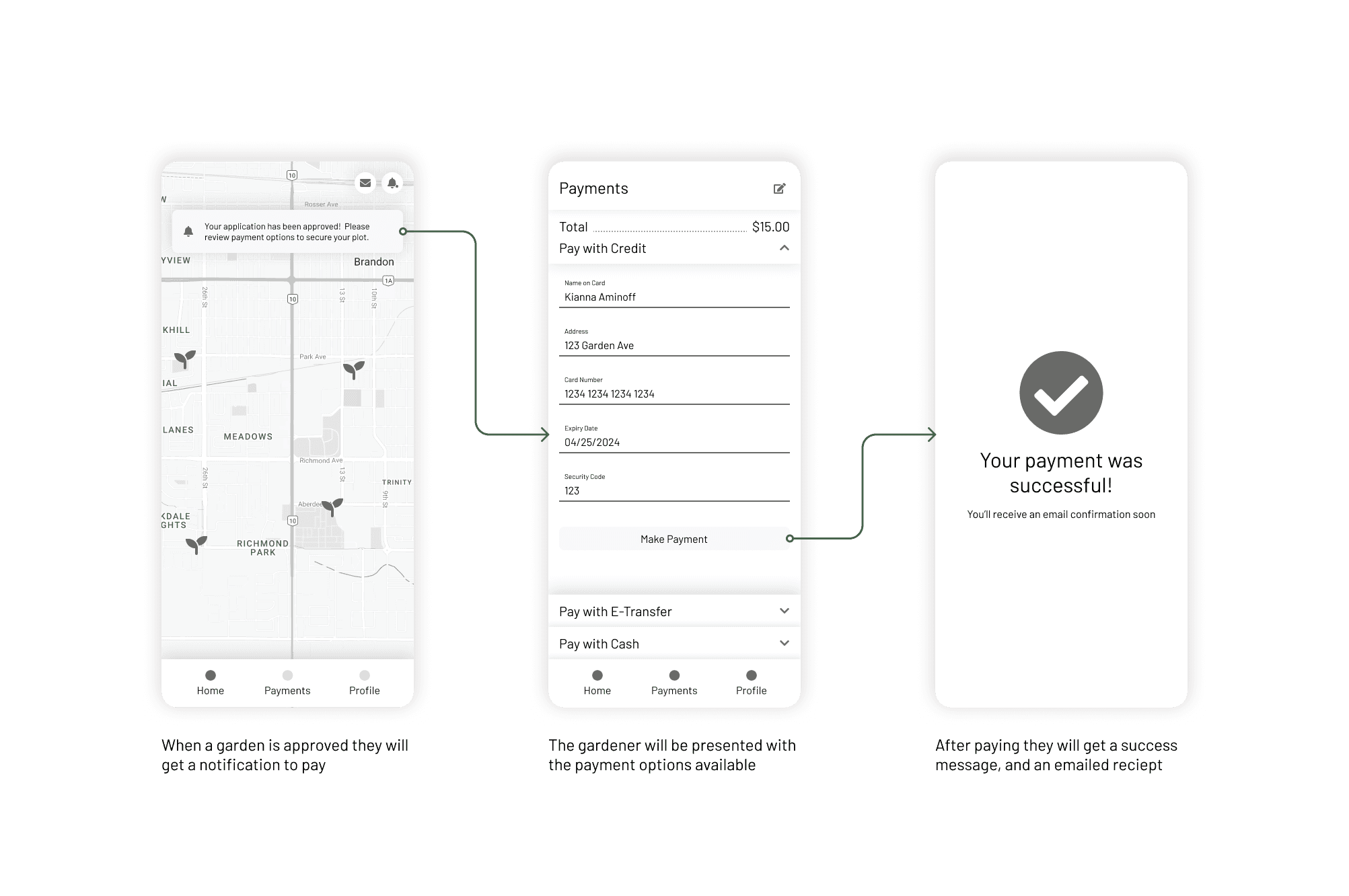 Accepting payments from gardeners