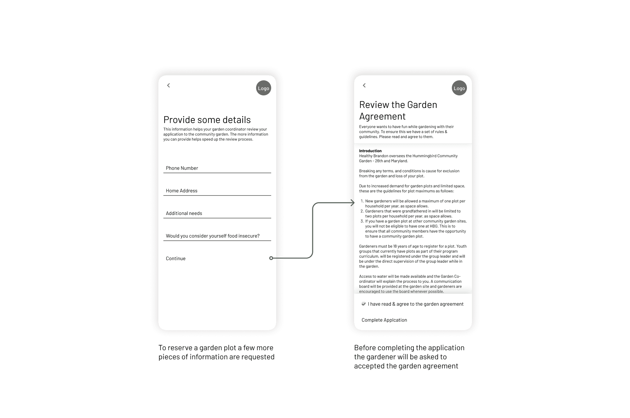 Sign a contract, Accept Terms & Service of the community garden