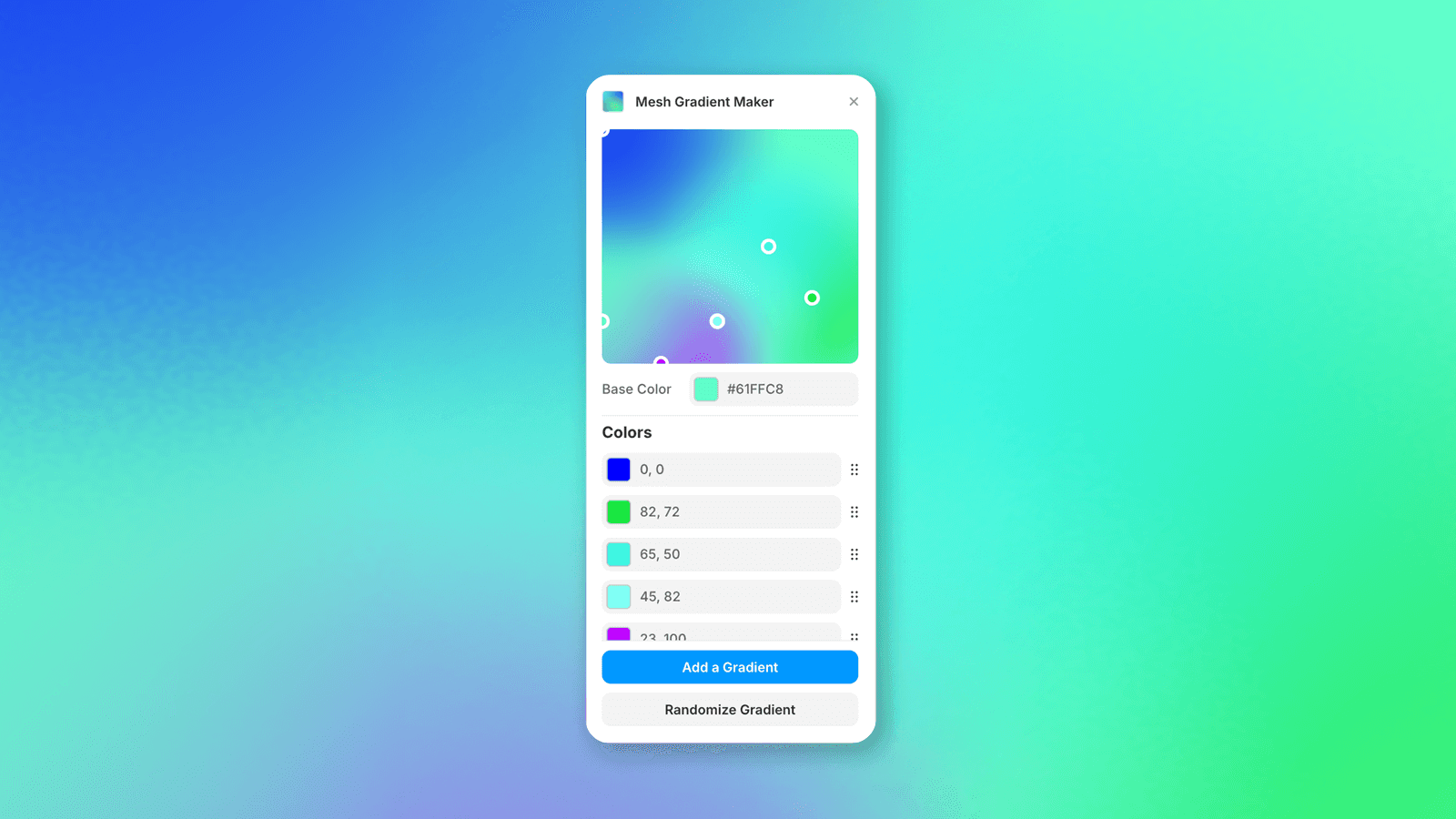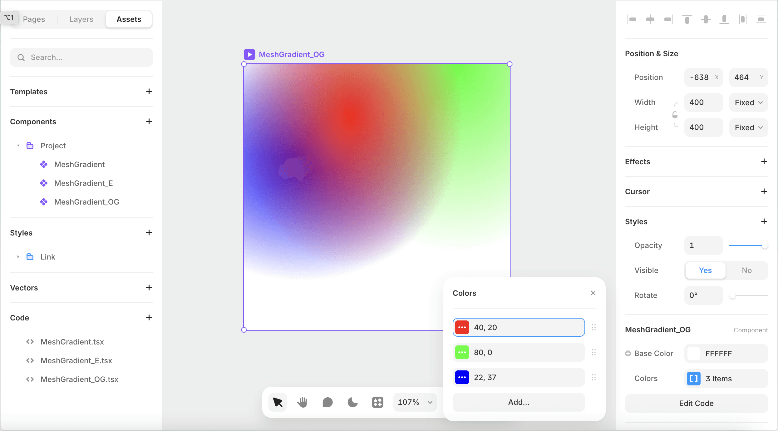 Shader Gradients proved that Framer users wanted gradient tools, and showed what was possible with shaders. But it also revealed a gap: what if someone wanted something simpler? A more focused tool for creating mesh gradients specifically, without the learning curve of shader programming?