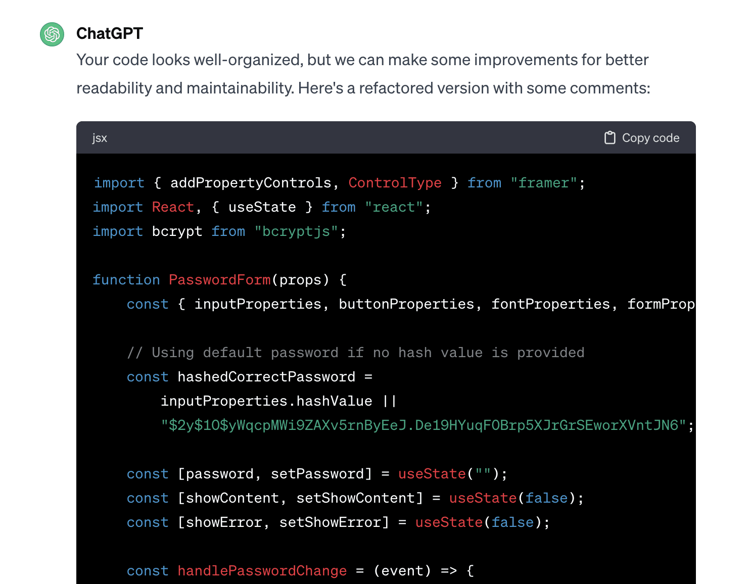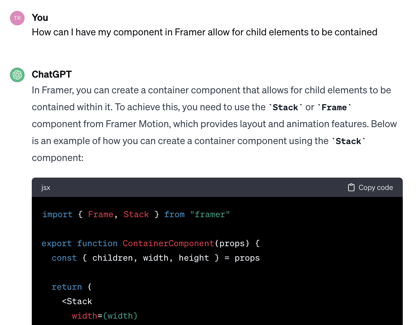 I started by having ChatGPT code a simple component for Framer.